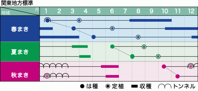 - 4~6月に出荷できるとはいえ、本種は不抽台品種ではなく播種期を誤ると抽台する。また、地域・土質・肥料・天候等により適期播きでも抽台することがある。