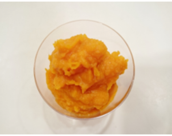 カボチャを約1/6にカットして、種とワタを取ったら茹でて(または蒸かして)、皮を取り除く。