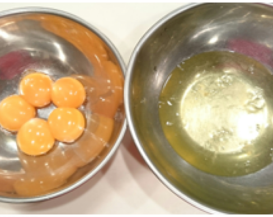 卵を卵黄と卵白に分ける。