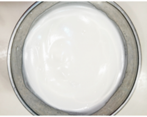 6を7の型に底をたたいてならしながら均等に流し込む。