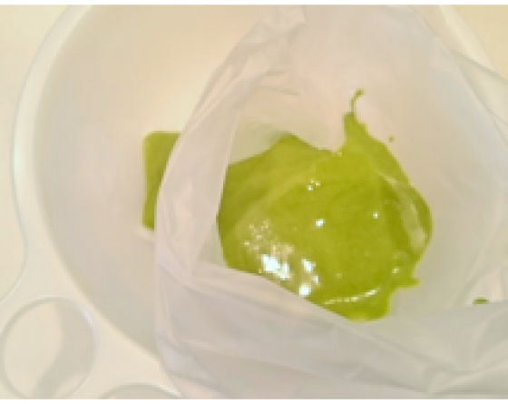 生クリームしぼり用ポリ袋に7を詰めて、ハサミで先端を約1cmカットする。
