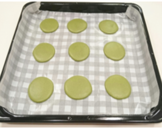 フランス菓子を和にアレンジ、陵西一寸のバタークリームをサンドしたグリーンマカロン
