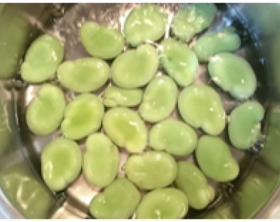 ソラマメを莢から取り出して、約2分塩茹でする。